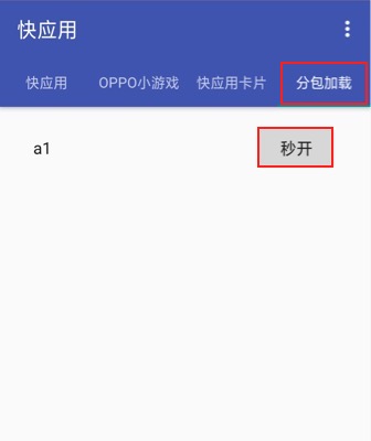 然后切换到 OPPO 小游戏调试器 的 分包加载 栏目,点击右上方的刷新即可看到分包的游戏名称,点击 秒开 即可跟正常打包的 rpk 一样使用。
