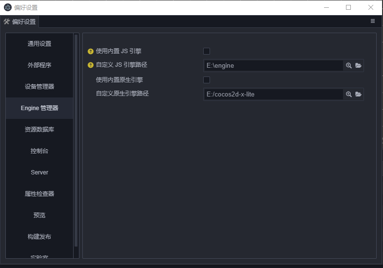通过 Cocos Creator 3D -> 偏好设置 的 Engine 管理器 选项卡来设置需要定制的 Cocos2d-x-lite 引擎路径。
